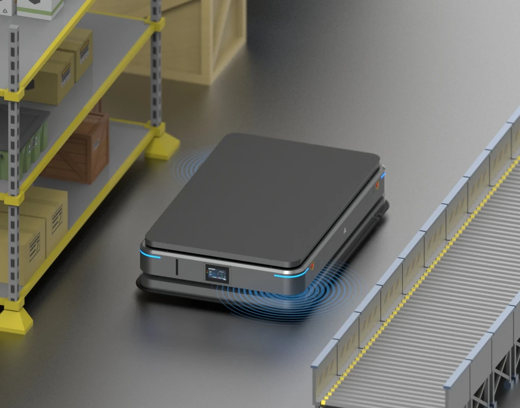 Equipped with LiDAR safety barrier avoidance, front contact anti-collision bar, left and right emergency stop buttons, multiple safety protection to protect equipment and cargo safety.